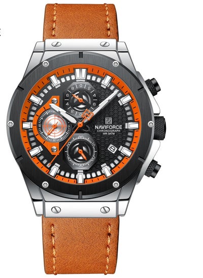 ساعة NAVIFORCE Fashion جلد طبيعي كوارتز كرونوغراف للرجال تاريخ تلقائي رياضي مقاوم للماء ساعات يد تناظرية