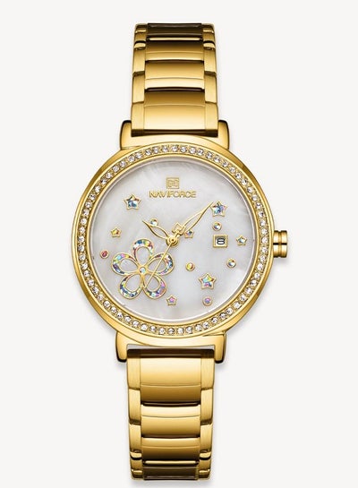 NAVIFORCE ساعة نسائية فاخرة موضة ستانلس ستيل مقاوم للماء سوار المعصم مع التاريخ NF5016