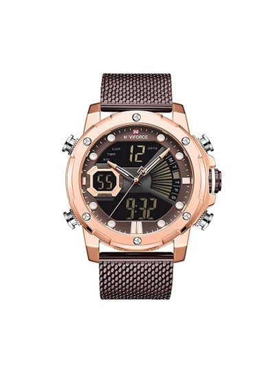 ساعة يد رقمية ستانلس ستيل شبكية سوداء بتوقيت مزدوج ال سي دي للرجال من نافي فورس NF9172 - ذهبي وردي وأسود