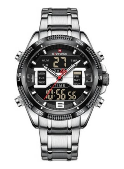 NAVIFORCE NF9201 هي ساعة رجالية تتميز بشاشات رقمية وتناظرية، بالإضافة إلى وظيفة تقويم كاملة. تحتوي على هيكل وحزام من الفولاذ المقاوم للصدأ، مما يجعلها متينة ومقاومة للماء.