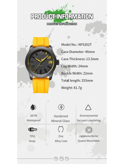 NAVIFORCE NF9202T سيليكون باند ساعة رياضية مقاومة للماء للرجال ساعة يد كوارتز عادية تصميم مقاوم للصدمات ساعة رجالية Relogio Masculino