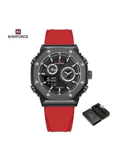 ساعة NAVIFORCE الرياضية للرجال أصلية متعددة الوظائف تناظرية مزدوجة العرض مقاومة للماء باللون الأسود مع حزام سيليكون كرونوغراف كوارتز ساعة يد NF9216T هي ساعة أنيقة وعملية مصممة لعشاق الرياضة والرجال الذين يقدرون المظهر القوي والأنيق.