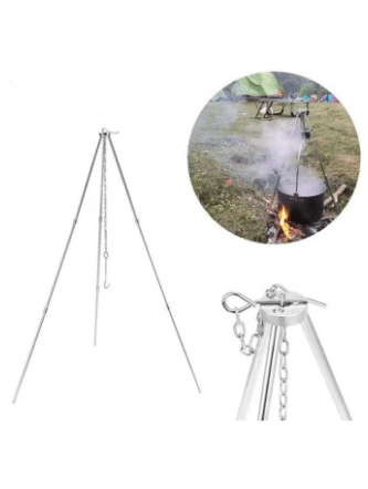 - حامل ثلاثي القوائم للطهي في الهواء الطلق مناسب للتخييم الجماعي والعائلي والنزهات والمخيمات.