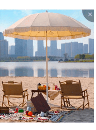 مظلة خارجية للحديقة والشاطئ مزودة بشراشيب، مقاس القطر: 240 سم