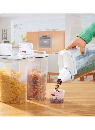 عبوة من 2 حاوية تخزين طعام لحفظ الحبوب البلاستيكية موفرة للمساحة مع غطاء محكم الغلق وكوب قياس