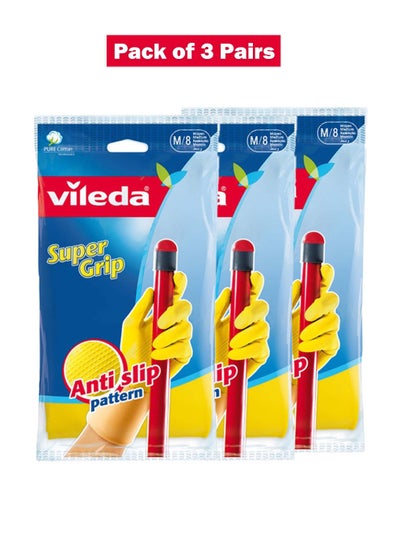 مجموعة من 3 أزواج من القفازات القابلة لإعادة الاستخدام Super Grip أصفر M