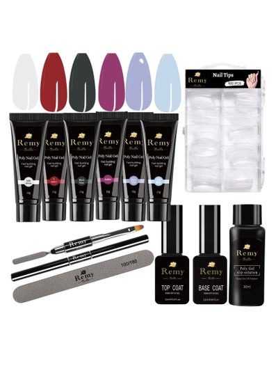 مجموعة بولي جل أكريليك - 6 ألوان مع طبقة أساسية علوية من محلول الانزلاق، مجموعة واحدة للأظافر والمانيكير DIY في المنزل (أحمر وأزرق)