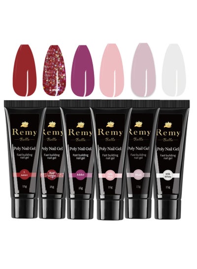 مجموعة تمديد الأظافر من بولي جل، 6 ألوان شائعة للتصميم الفني باللون الأحمر