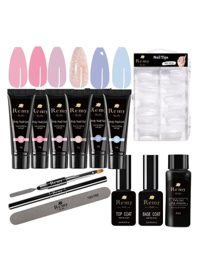 مجموعة جل الأظافر الأكريليكي من بولي نيل، 6 ألوان مع طبقة أساسية علوية، مجموعة واحدة لطلاء الأظافر والعناية بها بنفسك في المنزل (وردي وأزرق)
