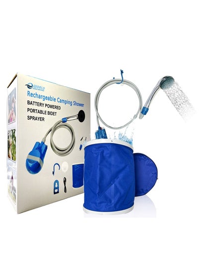 دش مسلم محمول قابل لإعادة الشحن USB مزود برأسين مضخة وسلة للتخييم والاستخدام في الهواء الطلق