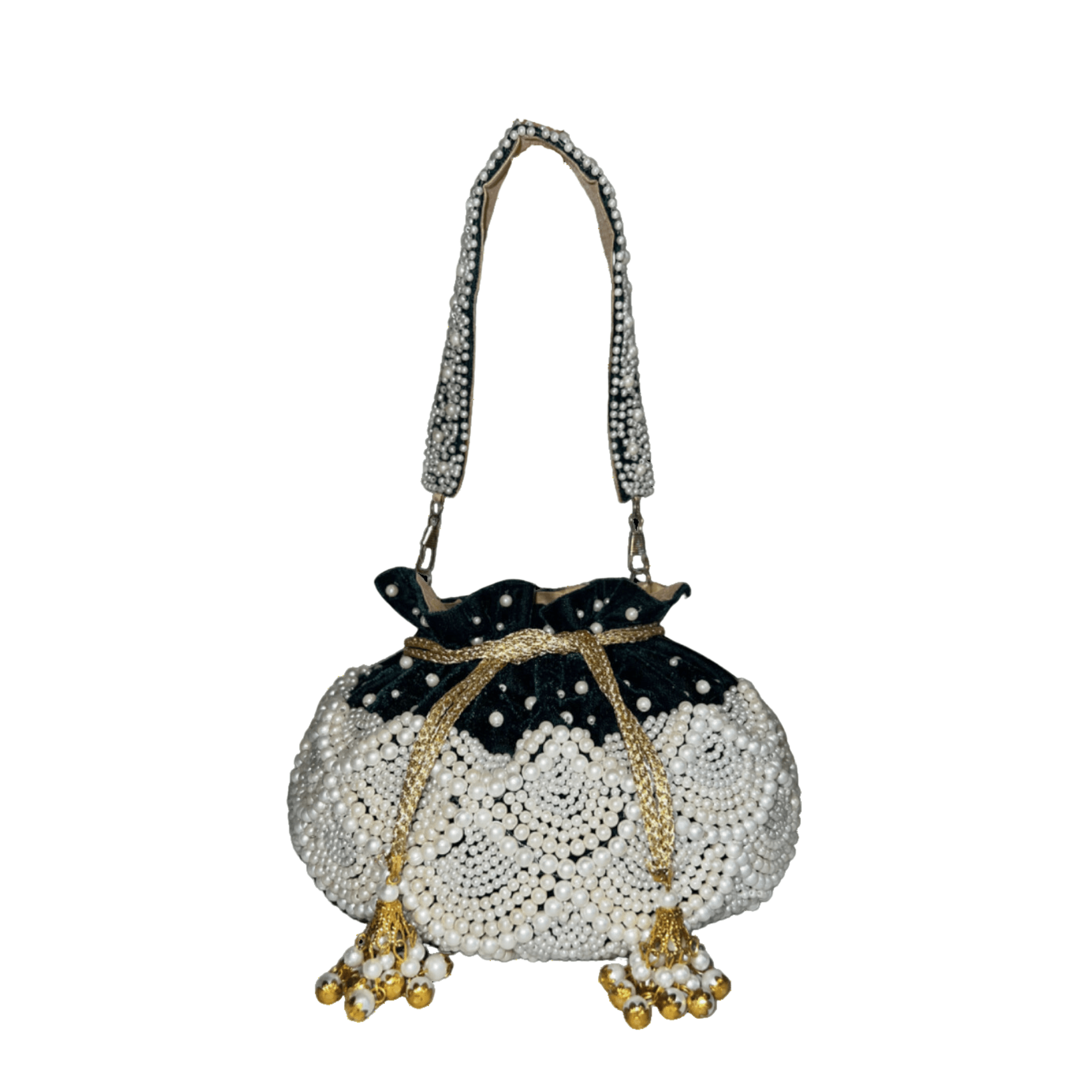 صُنعت حقيبة بوتلي هذه بتطريز خرزي متقن وعناية فائقة بالتفاصيل، وتتميز بتصميم دائري يضفي لمسة من الجمال الخالد على أي إطلالة. مساحتها الداخلية الرحبة توفر مساحة واسعة لمستلزماتك الأساسية، بينما يضمن رباط الإغلاق الأمان والأناقة. سواء كنتِ تحضرين حفل زفاف أو احتفالًا بهيجًا أو فعالية ثقافية، ستُضفي هذه الحقيبة لمسة مميزة على إطلالتكِ وتُضفي عليها لمسة من الفخامة بفضل حرفيتها الرائعة. تسوقي الآن وأضيفي لمسة من الفخامة إلى خزانة ملابسكِ!