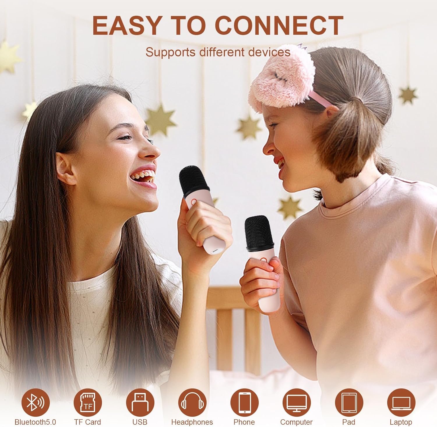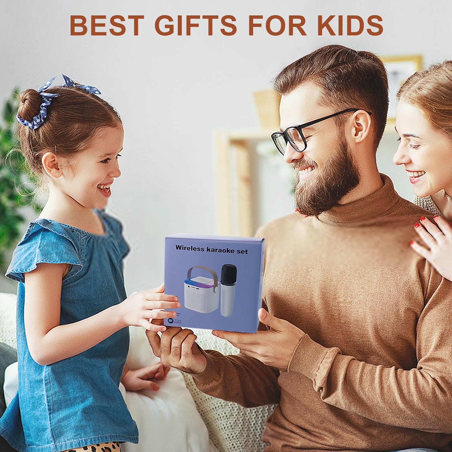 جهاز كاريوكي صغير للأطفال من سيفون، طقم من 2 ميكروفون لاسلكي، مكبر صوت بلوتوث محمول، أضواء ديسكو، هدايا مثالية لعيد الميلاد وعيد الميلاد للفتيات والأولاد بعمر 4 5 6 7 8 9 10 12 عامًا فأكثر