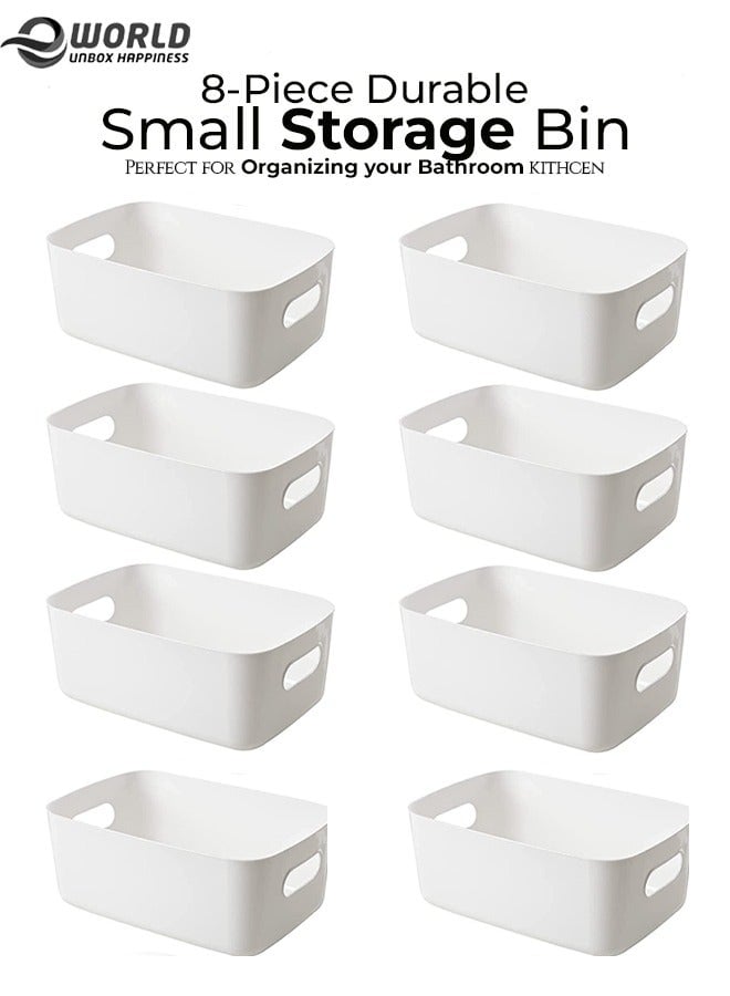 Set of 8 Plastic Storage Bins Multiuse Desk Cabinet Organizer with Built in Handle