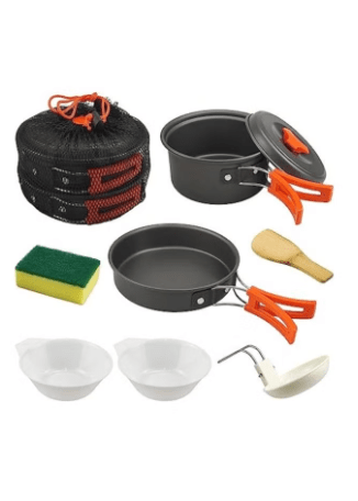 مجموعة من أدوات الطبخ للتخييم لحقيبة الظهر، مجموعة أواني الطبخ والمقالي، مجموعة أدوات الطبخ للبقاء على قيد الحياة للمشي لمسافات طويلة، أدوات الطبخ في الهواء الطلق والنزهات والمشي لمسافات طويلة