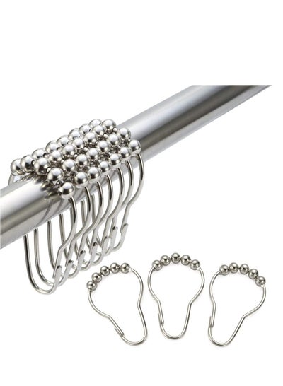 حلقات الدش حلقات ستارة الدش حلقات تعليق من الفولاذ المقاوم للصدأ لستارة الدش، خطافات ستارة معدنية لقضيب تلسكوبي ستارة الدش مع نظام منزلق