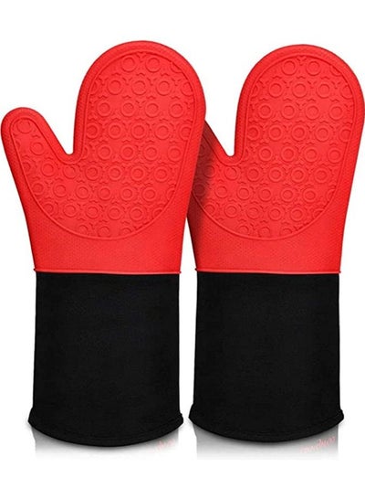 قفازات الفرن المصنوعة من السيليكون الخاصة بنا صالحة للطعام ويمكنها تحمل الحرارة حتى 450 درجة فهرنهايت. فهي مقاومة للماء وتوفر لك الأمان الكامل أثناء العمل مع السوائل الساخنة أيضًا. إنها أداة ممتازة أثناء الخبز أو الطهي أو حمل الأطباق الساخنة. توجد في نهاية كل قفاز بطانة قطنية مبطنة تزيد من طول قفازات الفرن وتحمي ساعديك من الحروق أو الحروق. على عكس القفازات القطنية، فهي مقاومة للماء والبقع مما يجعل عملية التنظيف مريحة وسهلة للغاية. الخامة: سيليكون وقطن اللون: أحمر الأبعاد: 33.81 × 19.81 × 4.29 سم الوزن: 272.16 جرام