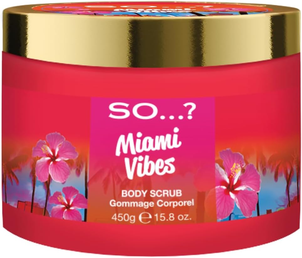 إذن...؟ مقشر الجسم المقشر للنساء من إسكيبس ميامي فايبس، برائحة الفواكه والزهور، ٤٥٠ غرام، برائحة الكمثرى الحلوة والبطيخ الأخضر وزهر التفاح، خالٍ من القسوة.