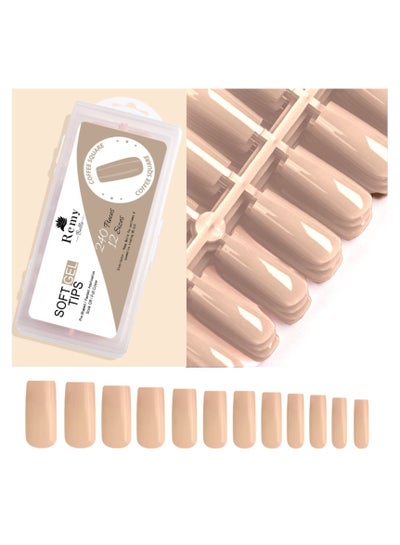 مجموعة أطراف أظافر جل ناعمة لتغطية كاملة لتمديدات الأظافر، 240 قطعة من 12 مقاسًا (مربع القهوة)
