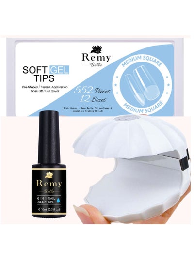 مجموعة أطراف أظافر ريمي بيل الناعمة ذات الغطاء الكامل والمنحوتة مع جل الغراء - مربع متوسط، 552 قطعة، 12 مقاسًا، مجموعة تمديد أظافر أكريليك مع ضوء الأشعة فوق البنفسجية.