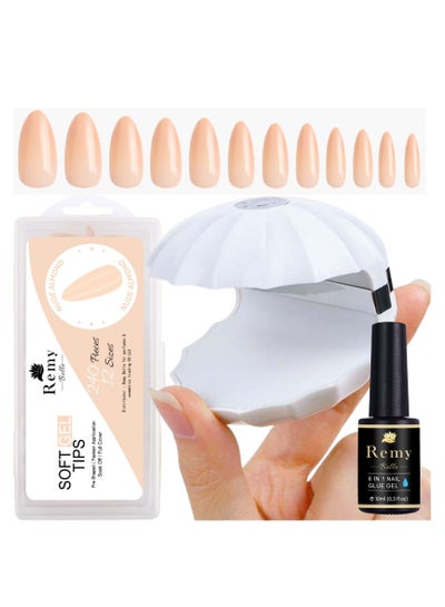 مجموعة أطراف أظافر جل ناعمة مع جل غراء مع مصباح ضوء الأشعة فوق البنفسجية المحمول 240 قطعة 12 مقاسًا لون اللوز العاري (المجموعة 1)