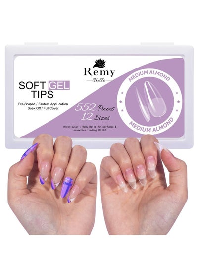 أطراف أظافر جل ناعمة، لون لوز متوسط، 552 قطعة، 12 مقاسًا