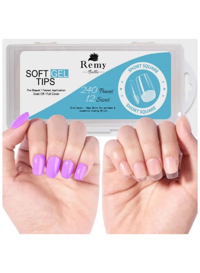 أطراف أظافر هلامية ناعمة قصيرة مربعة 240 قطعة 12 مقاسًا