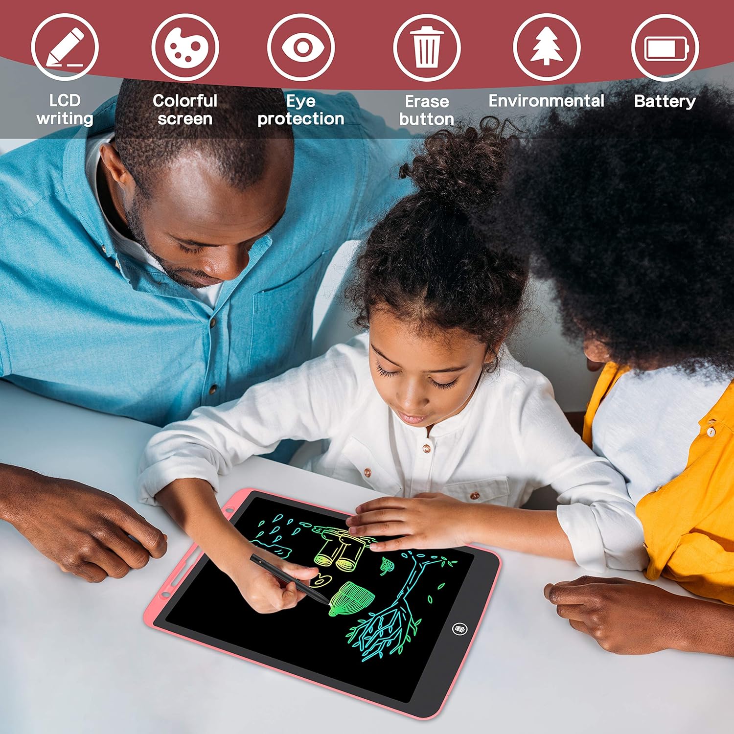 جهاز لوحي للكتابة LCD من STREET WALK للأطفال، 12 بوصة، لوح رسم تعليمي ملون، لوح كتابة إلكتروني قابل للمسح وإعادة الاستخدام، لوح رسم للأطفال الصغار، هدية لعبة تعليمية للأولاد والبنات من سن 3 إلى 8 سنوات (وردي)