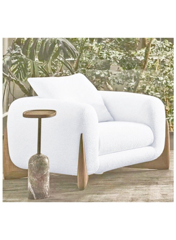 Tobago Fleece Fabric Overstuffed Multifunction Sofa, Wood Furniture For Home Livingroom, Bedroom, Office With Pillows (White, Single Seat 1.1M)