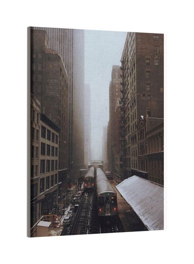 لوحة فنية جدارية من القماش الكتاني بإطار وطبعة قطار بني/أبيض 60x80سنتيمتر