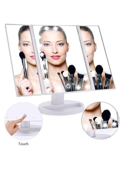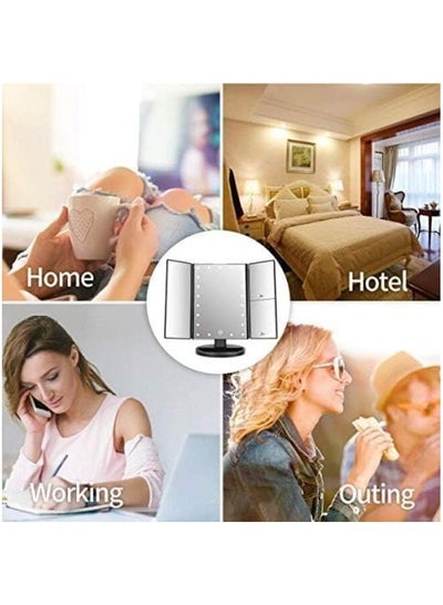 مرآة زينة ثلاثية الطي مع 21 مصباح LED وشاشة تعمل باللمس والتكبير