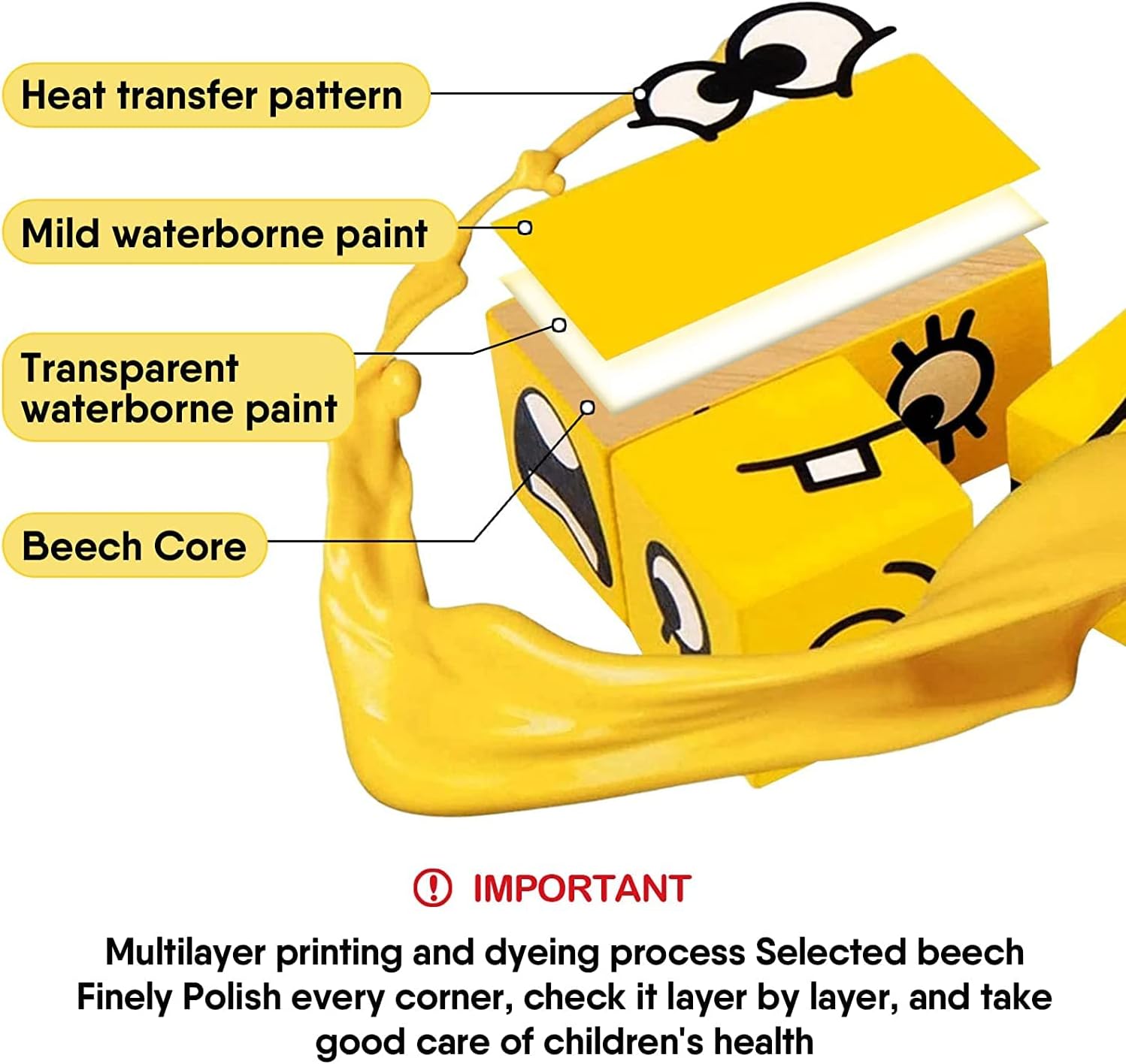 [مواد آمنة] كتلة التعبير المكعبة مصنوعة من خشب عالي الجودة، وسطحها مطلي بطلاء مائي ناعم وآمن، عديم الرائحة وغير سام، ومناسب جدًا للعب الأطفال. البطاقة مصنوعة من ورق طباعة عالي الجودة، وطبقة السطح لا تتلاشى بسهولة، وتصميم الزاوية المنحنية لا ينحني بسهولة، وهي متينة.