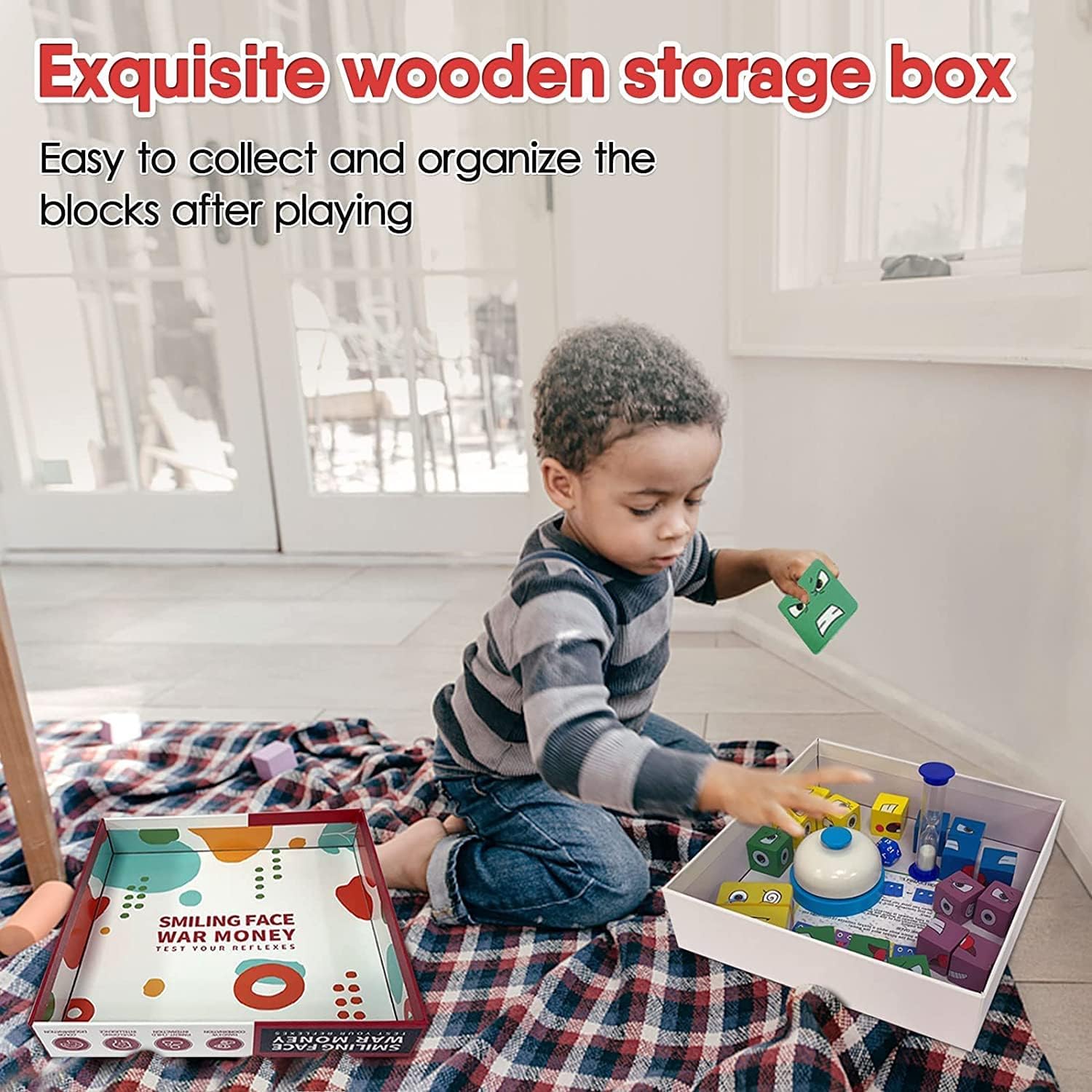[صندوق تغليف محمول وأنيق] لقد صممنا صندوق تغليف متينًا وأنيقًا، حتى يتمكن الأطفال من تخزين وتنظيم مكعبات البناء والبطاقات بعد الترفيه، بحيث لا يسهل فقدان الألعاب. صندوق الهدايا الرائع مناسب جدًا للأطفال لإحضاره إلى الحرم الجامعي ومنازل الأصدقاء وغرف النوم وغيرها من الأماكن المناسبة للعب الألعاب التفاعلية، حتى يقع الأطفال في حب هذه اللعبة.