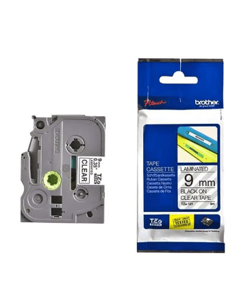شريط وسم TZE-121 شفاف/أسود 9 مم
