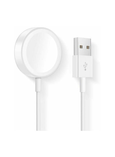 كابل شحن مغناطيسي لاسلكي USB لساعة أبل الذكية باللون الأبيض