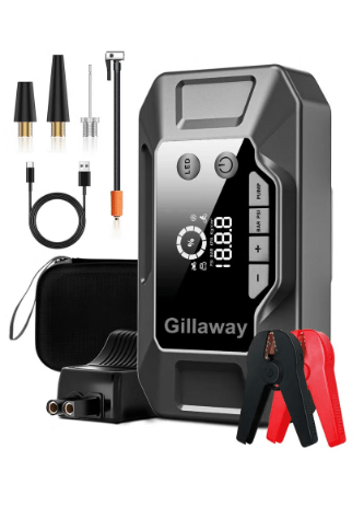 جهاز تشغيل السيارة متعدد الاستخدامات مع ضاغط هواء 150 رطل لكل بوصة مربعة وحزمة بطارية محمولة لمحركات البنزين 10 لترات والديزل 8.0 لتر، يتضمن شاحن بطارية السيارة وضوء LED وبنك طاقة وشحن سريع 3.0