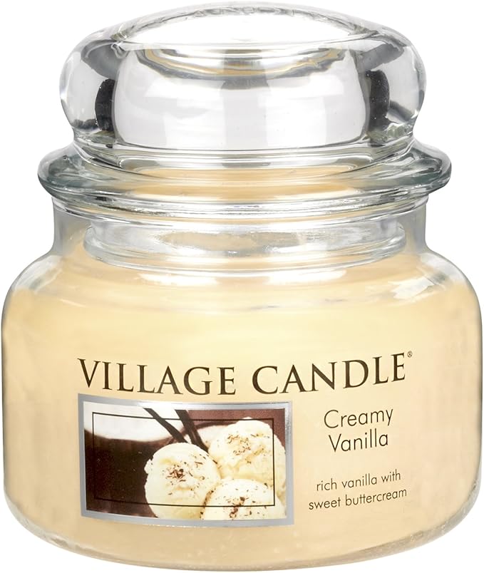 شمعة معطرة برائحة الفانيليا الكريمية من فيليج كاندل، 11 أونصة، وعاء زجاجي، حجم صغير
