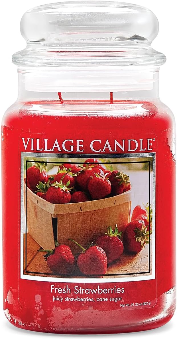 شمعة معطرة برائحة الفراولة المنعشة من فيليج كاندل، وعاء زجاجي كبير، 21.25 أونصة، لون أحمر، 21 أونصة