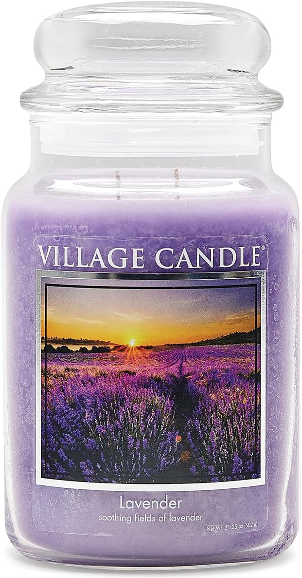 شمعة معطرة برائحة اللافندر من فيليج كاندل، في برطمان زجاجي كبير، 21.25 أونصة، بنفسجي، 21 أونصة