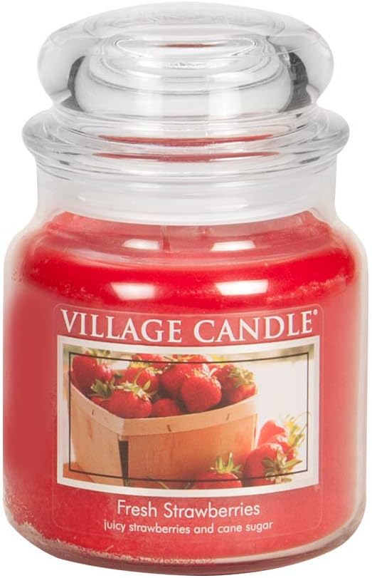 شمعة فيليج كاندل متوسطة الحجم معطرة - 14 سم × 10 سم - 16 أونصة (899 جم) - برائحة الفراولة الطازجة - مدة احتراق تصل إلى 105 ساعات