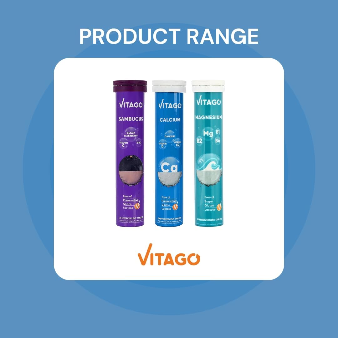 Vitago Calcium Effervescent Tablet, Vitamin D3, K2, High Absorption Calcium, Strong Bones and Teeth - 20 Tablets