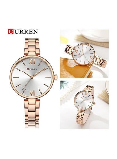 ساعة بعقارب مقاومة للماء 9017 للنساء - 35 ملم - ذهبي وردي