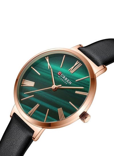 ساعة نسائية 9076 أنيقة مقاومة للماء بسوار من الجلد الأصلي وكوارتز - 32 ملم - أسود