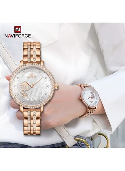 ساعة يد نسائية NF5017L RG/W انالوج من الستانلس ستيل