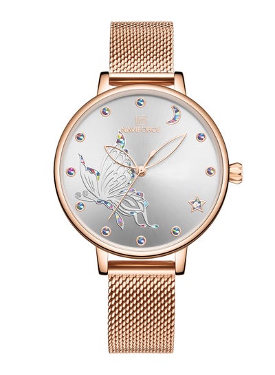 ساعة يد بعقارب من الستانلس ستيل NF5011 RG/W للنساء