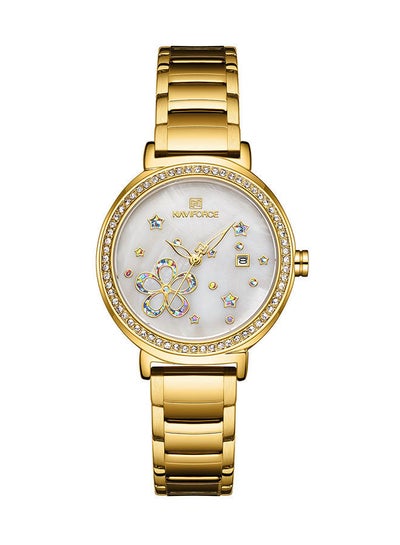 ساعة يد بعقارب من الستانلس ستيل طراز NF5016 G/W للنساء