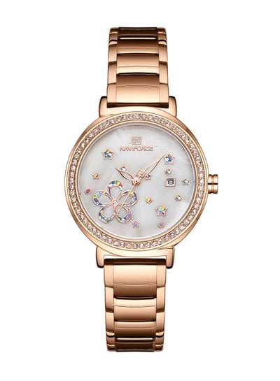 ساعة يد بعقارب من الستانلس ستيل NF5016 RG/W للنساء