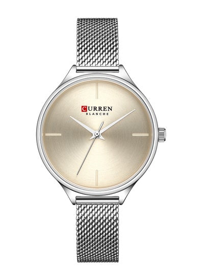 ساعة نسائية مقاومة للماء بسوار شبكي من الستانلس ستيل وكوارتز 9062 - 32 ملم - فضي