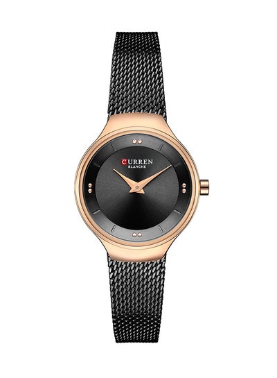 ساعة نسائية مقاومة للماء بسوار شبكي من الستانلس ستيل وكوارتز 9028 - 27 ملم - أسود