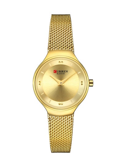 ساعة نسائية مقاومة للماء بسوار شبكي من الستانلس ستيل وكوارتز 9028 - 27 ملم - ذهبي
