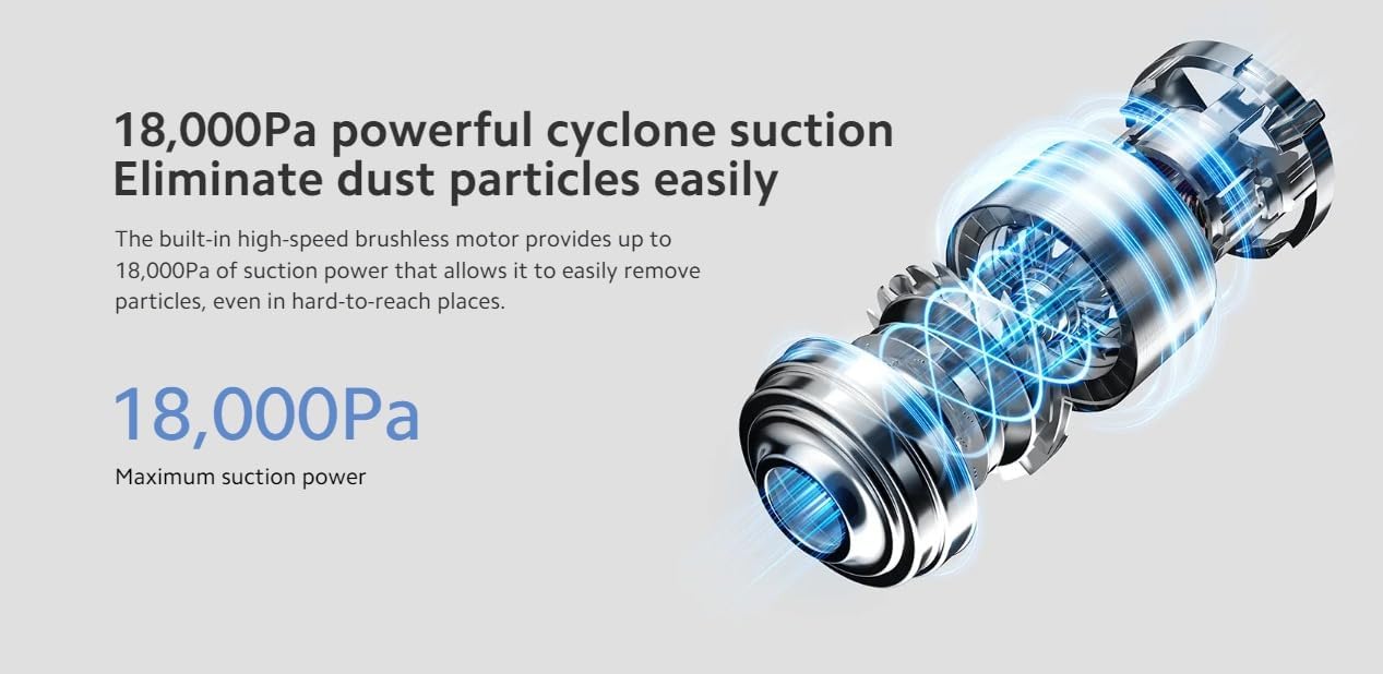 five-stage filtration set of functional brush heads 2+1 one touch dusting easier and more convenient cleaning 0.5 l container for dust and dirt 2-in-1 brush nozzle: maximum battery life 45 minutes (standard mode)/15 minutes (turbo mode) electric brush bar: maximum battery life 40 minutes (standard mode)/15 minutes (turbo mode)
